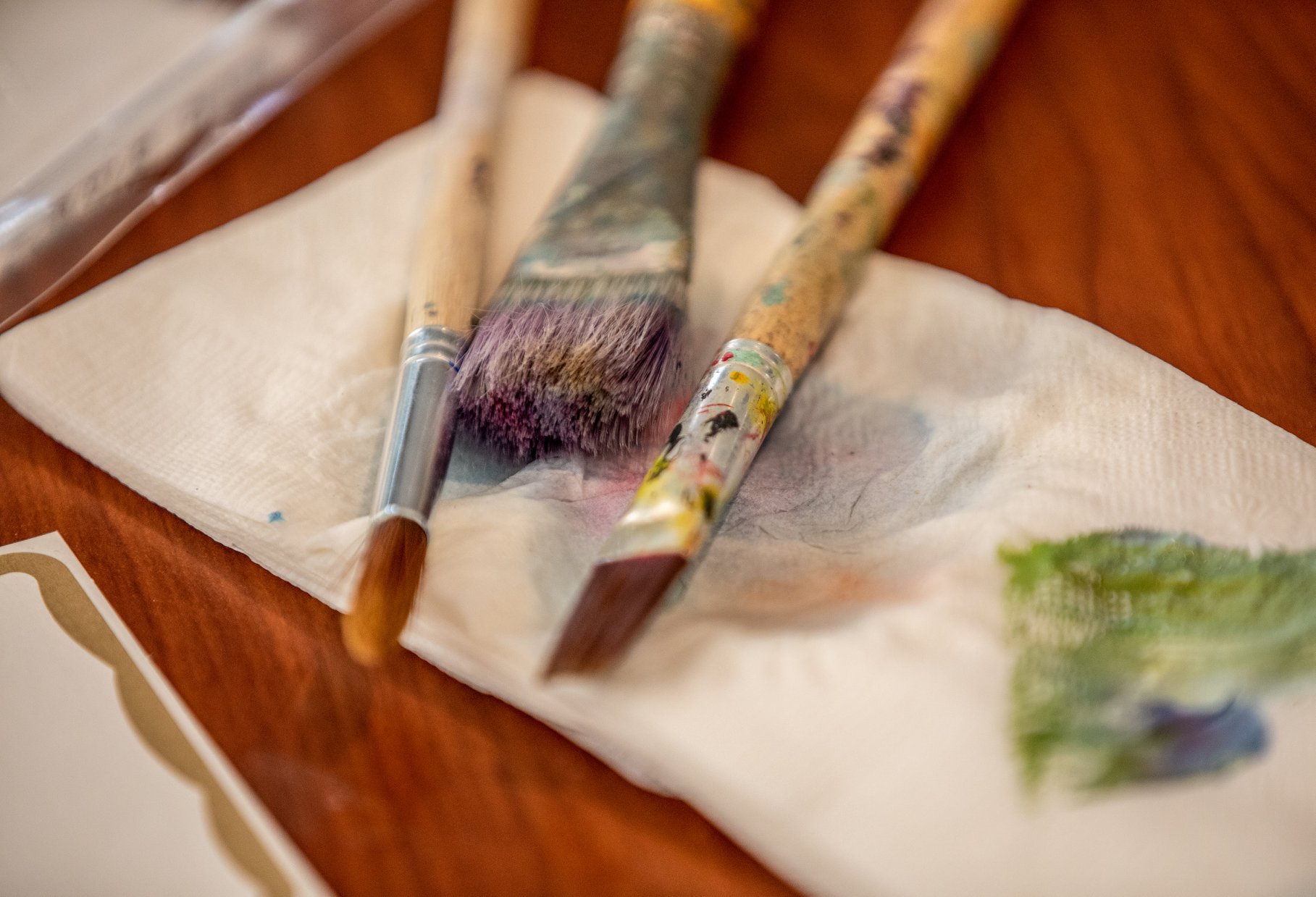 Wear casual, comfortable clothes. We recommend a short sleeve top or one where sleeves can be easily pushed or rolled up. If you are painting at home and have a painter's smock or apron, feel free to wear that. If painting at a studio, most studios will provide painter's smocks. We recommend that you inquire with your instructor prior to the studio class.