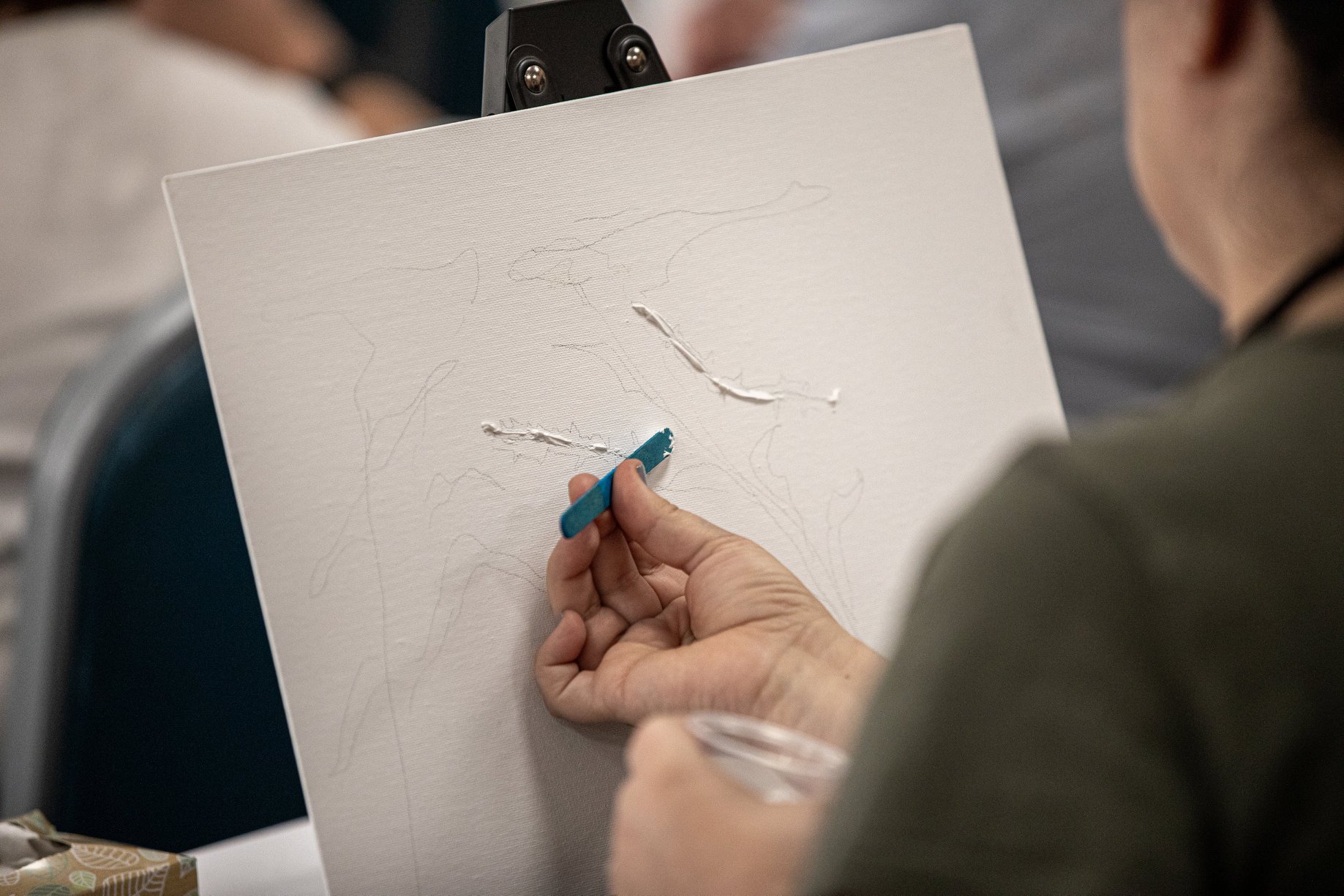 Some participants may initially think they might be more comfortable with someone there, but you may find that bonding with the other participants over such an intimate experience will give you the support you need. There are a limited number of seats available for each ScART class and studio space is limited to participants who have reserved a seat in advance. Please encourage your care-giver or significant support person to register and participate with you in the class.