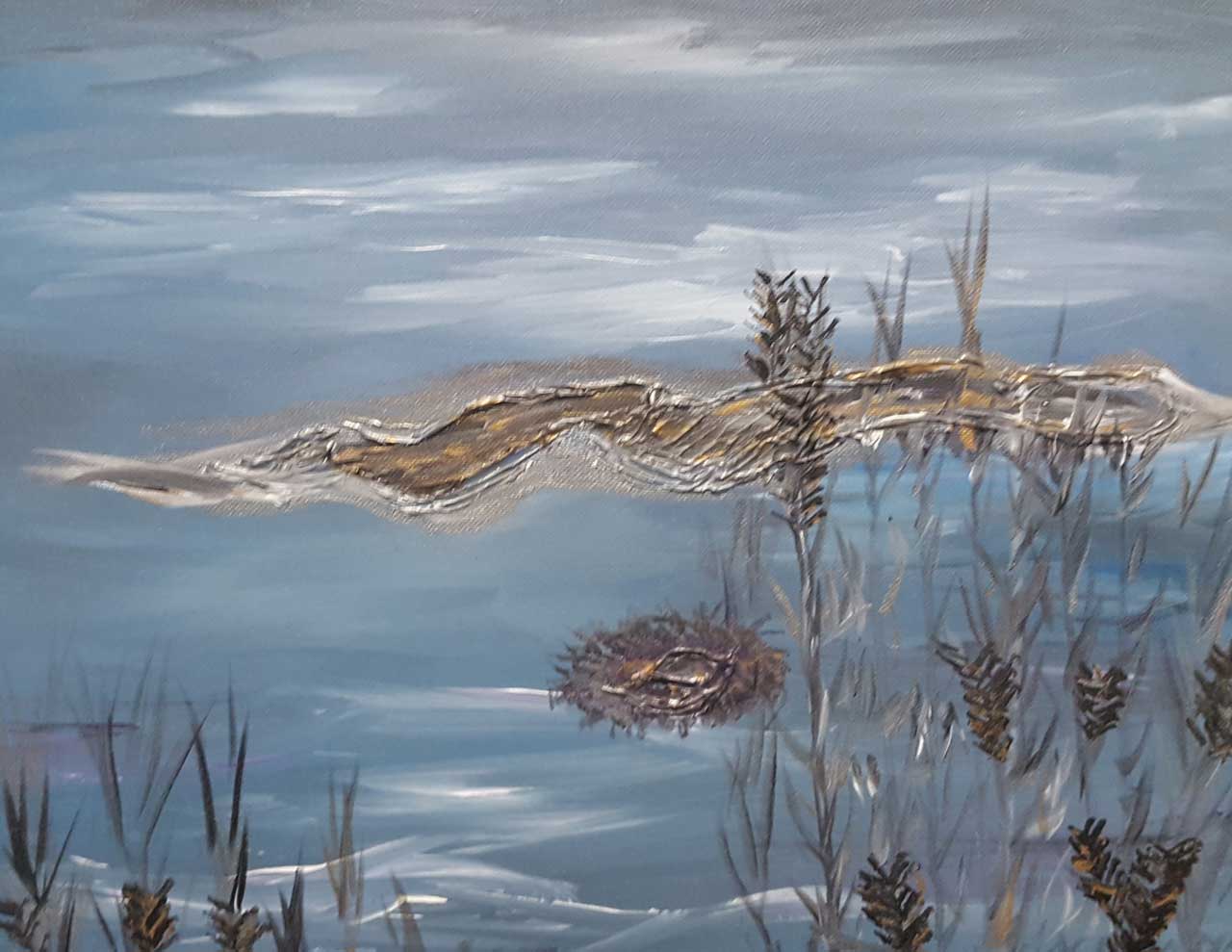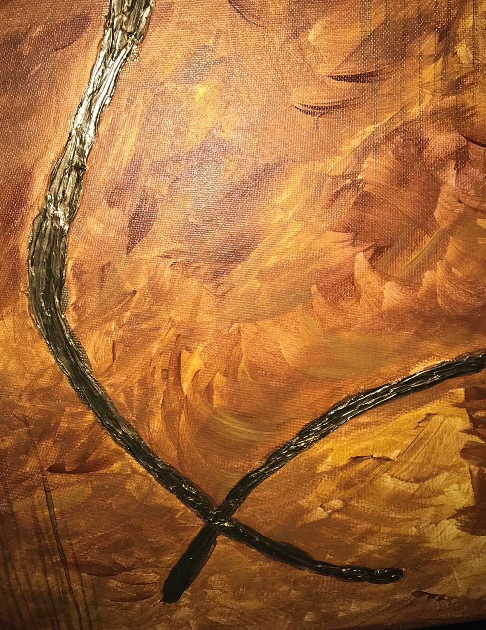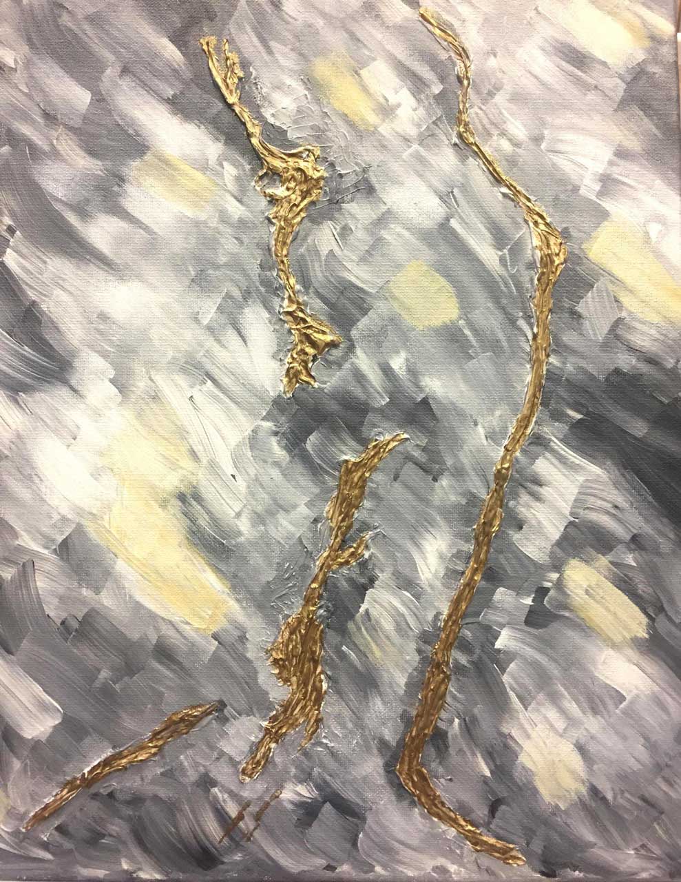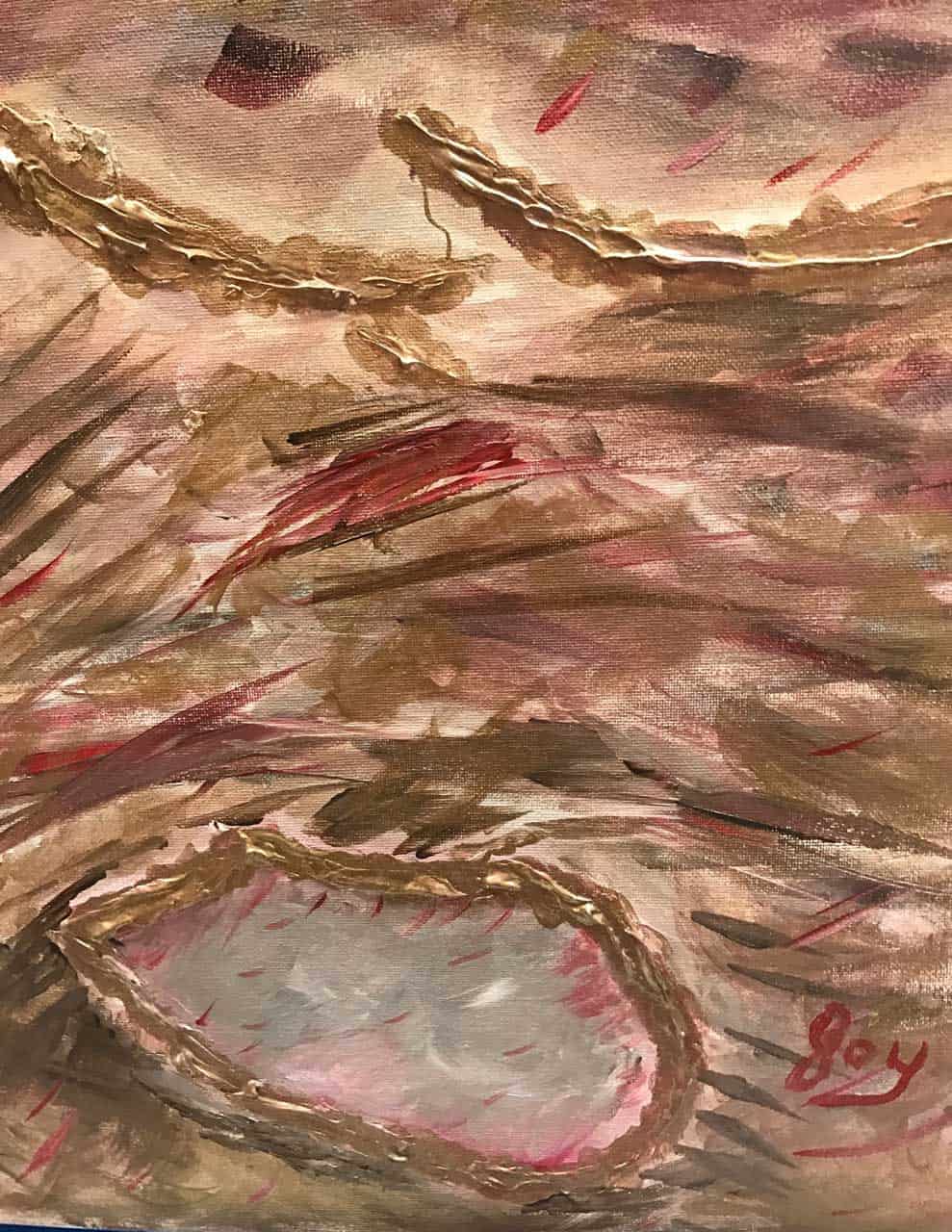 What did you learn from your ScART program? As I picked up my brush to paint this lovely conundrum at Painting with a Twist, I was in for a transformative evening. A basic horizontal cut with a dot atop in its actual appearance, I thought about what that placement of the scar meant to me. Nothing. I turned it sideways and upside down. Maybe. I could change it to something abstract and poetic. In its original shape, it appeared to be a sleeping woman with a moon behind her. Too perfect, I thought. It went sideways and appeared to be a woman being chased by an orb. Too creepy, I thought. It went upside down and I saw a landscape with a magic egg. Hmmm, now that’s poetic, but too storybook fairytale. So I went with the reclining woman and moon idea, because I am “perfect” in the eyes of God. Still, while others chose a myriad of happy colors, I chose dark, solemn colors because I had not fully embraced the perfection of this puckered, crooked carving in this flesh of mine. “Give me the colors of a dark and stormy night” I requested. I picked up my brush and began to paint my story. This is a testament to the adage, “Life happens when you make plans.” I had a plan in mind about what I was going to paint, but by the end of the session, it turned into something else. I wanted to try a clever trick and create an intentional column of paint drippings and runnings that the instructor demonstrated so effortlessly to us. It went well but I wasn’t really sold on the creative outcome. My reclining woman looked like she had been skewered, not crying, and not in an abstract and breathtaking setting. I just messed up my painting!!! I thought. Then something told me to just breathe and relax. Everything is okay. Every stroke is perfect. Every painting a work of art. Suddenly my column of drippings found some new paint along the sides. Maybe I could turn them into trees. It was going well until my wrist slipped and I accidently dabbed a black mark on the canvas. Needless to say, I was disappointed. However, I stayed the course and turned that black dot into something else. Enter the reeds; the wheat-looking flora; the post-apocalyptic bronzy hues and pewter metallics. In a nutshell, my poetic “reclining woman of repose” turned into an eerie coastal marsh just before a storm of Armageddon. I had gone from the tranquility of the Garden of Eve in Genesis to the desolate wastelands in Revelations. Even so, I am pleased with my work.